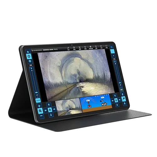 The X5-HMA4 pipeline CCTV inspection robot is a high-definition system that uses a tablet as the main control unit. The controller connects wirelessly to other components, enabling real-time display and recording of HD inspection videos and crawler status.