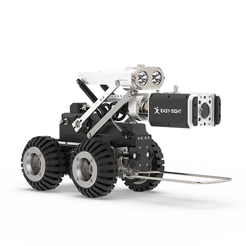 The robot consists of four parts: the crawler, camera, cable reel, and control system. The crawler can be equipped with various lenses (e.g., rotating, pan-tilt, or fixed) and responds to commands from the control system—such as movement, steering, speed adjustment, and camera positioning. The control system displays and records footage in real time, while also allowing operators to add notes via touchscreen.
