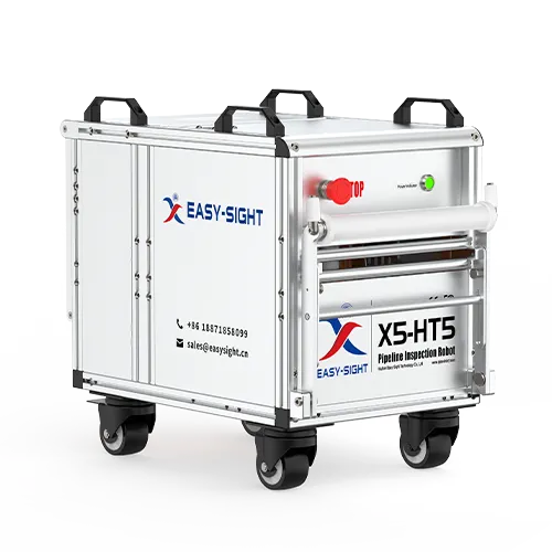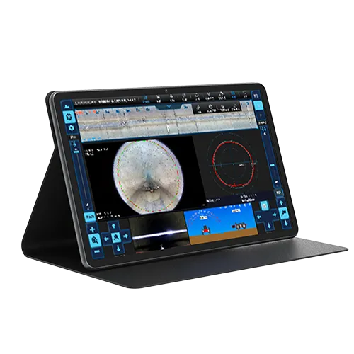 The X5-HT5 pipeline CCTV inspection robot is a high-definition pipeline inspection system that utilizes a tablet as the primary control interface. The main control unit connects wirelessly to other system components to display and store high-definition inspection video in real time. The X5-HT5 pipeline CCTV inspection robot consists of four main parts: the crawler, the camera, the cable reel, and the main control unit. The crawler, which carries the camera, connects to the cable reel and responds to system operation commands.
